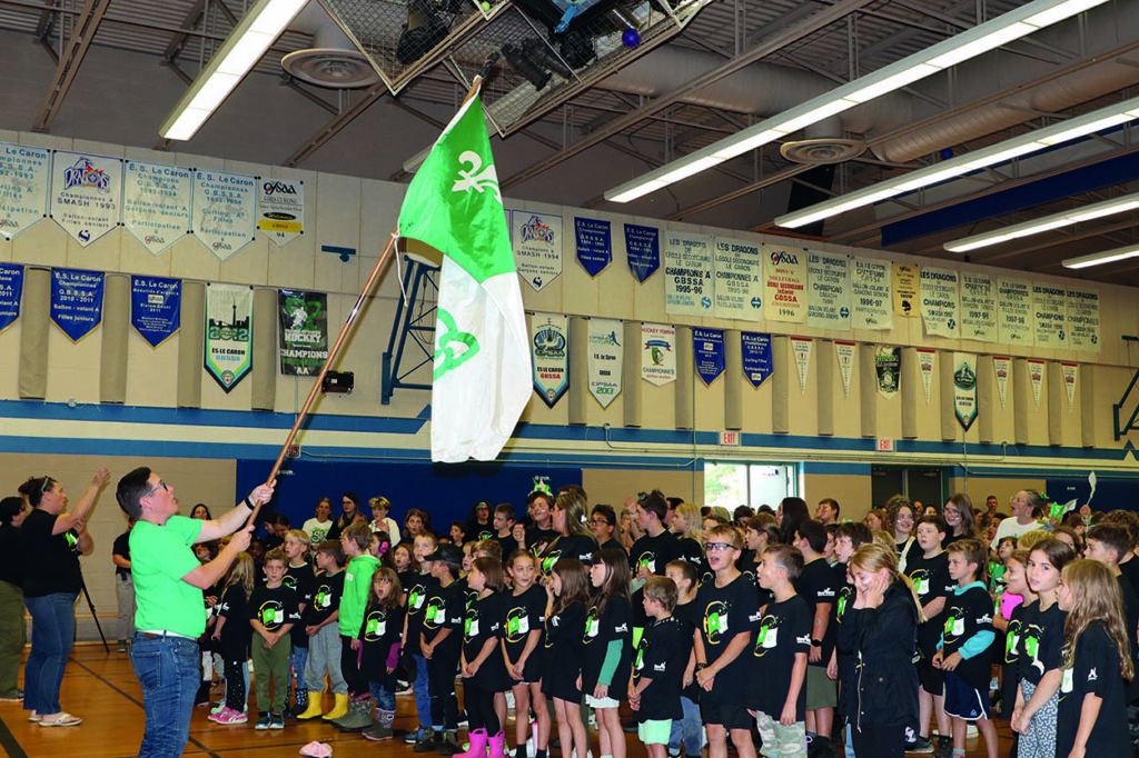 Avant le spectacle tous les jeunes ont chanté en choeur «Mon beau drapeau» alors que Tina-Anne Thibideau brandissait bien haut le drapeau franco!