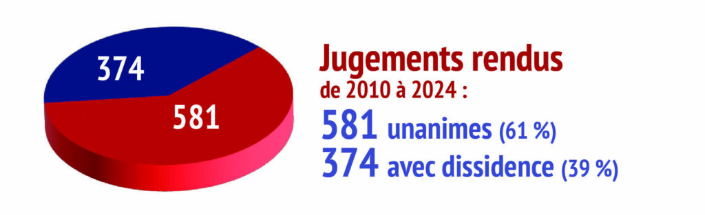 Les juges n’ont pas à s’entendre sur les motifs ou les conclusions d’un jugement. Tout juge «dissident» doit simplement s’expliquer dans la décision.