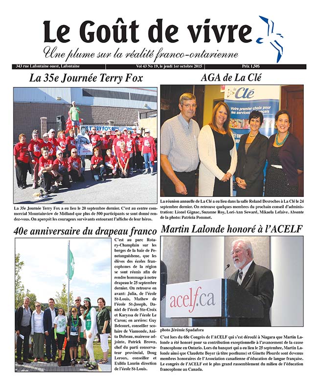 Le Goût de vivre (Vol.43 No.19) – 1 octobre 2015