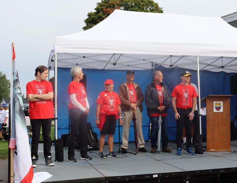 À l’occasion de la Marche Terry Fox des survivants du cancer se sont regroupés sur la scène afin de rappeler à tous les participants que
