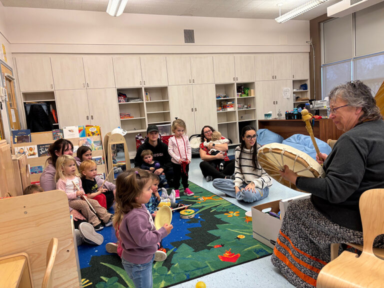 Angelia, coordonnatrice autochtone d’EarlyON était au centre On y va à l’école Sainte-Croix le 12 novembre dernier afin de présenter des activités spéciales. On aperçoit