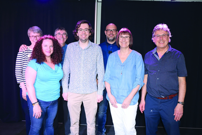 On retrouve Vincent Bishop sur la scène de la Clé entouré de Julie Kim Beaudry, Michèlle Laurin, Louis Lefaive et en arrière: ses parents Line