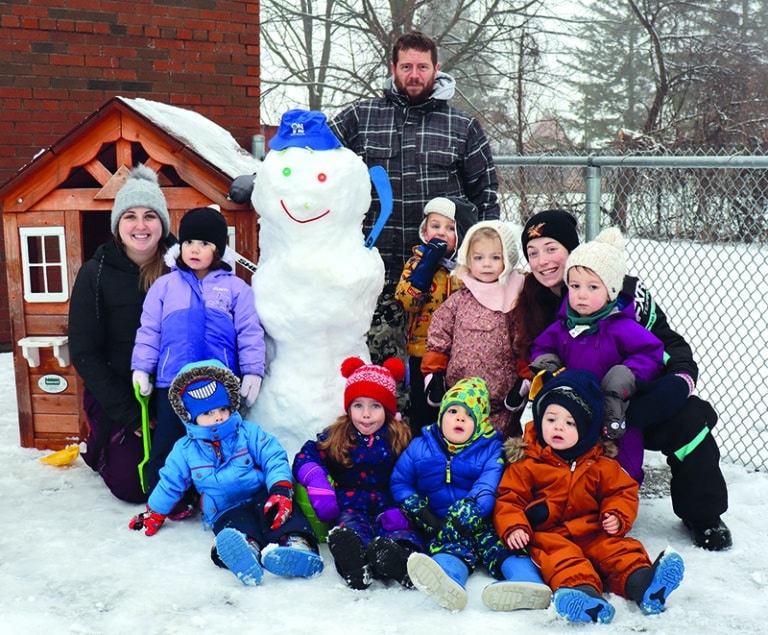 Les jeunes de la garderie de Lafontaine ont profité de la belle neige collante tombée le 12 janvier pour confectionner un bonhomme de neige. Ce