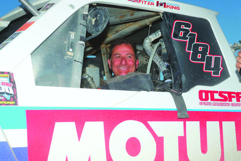 On aperçoit André Laurin de Lafontaine président fondateur de l’entreprise OTSFF, au volant de son 4×4 lors d’une course hors route. Josée VanderByl La «Une»