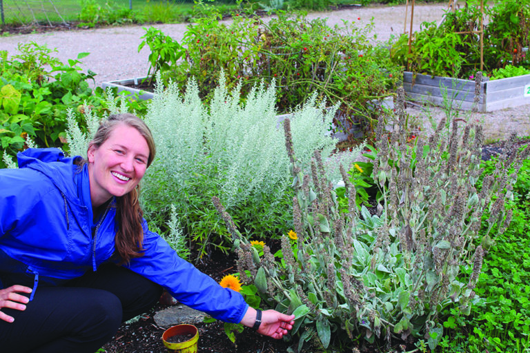 Maggie Off, du canton de Tiny, palpe des plantes cultivées tout particulièrement pour le toucher. Le jardin communautaire de Perkinsfield se porte bien malgré tout.
