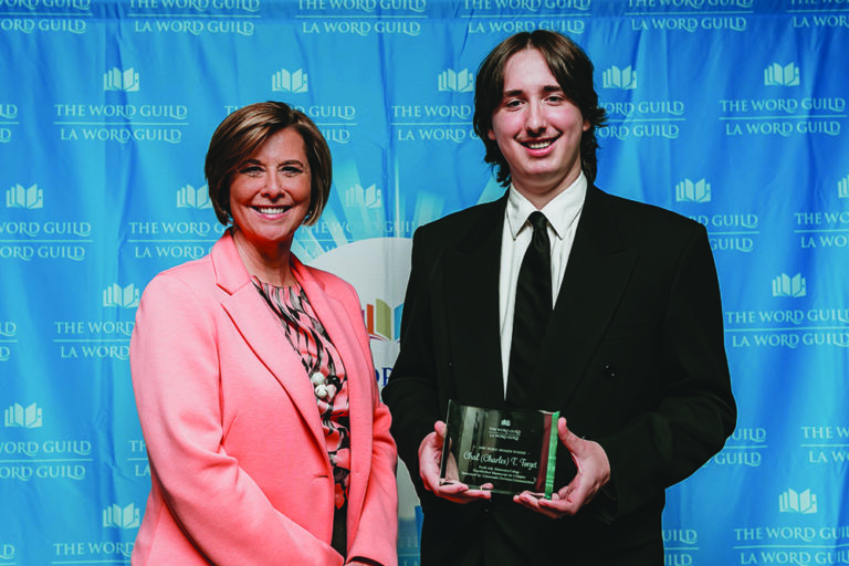 Lorna Dueck, présidente directrice générale de Crossroads Christian Communications Inc., commanditaire de l’évènement a remis le prix littéraire Fresh Ink à Chal Forget de Lafontaine