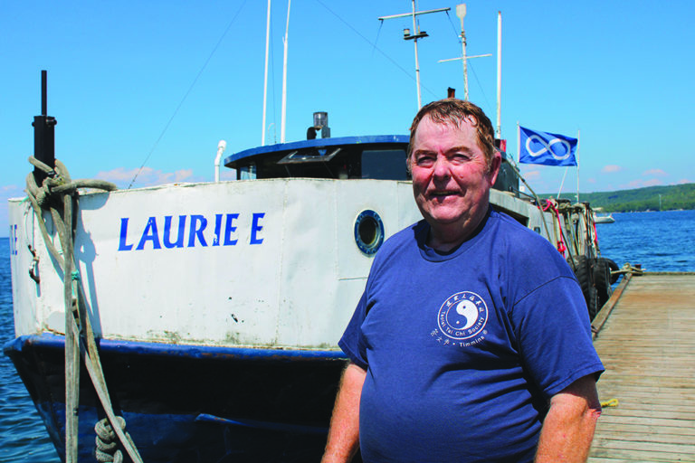 Le grand pêcheur de la Baie Georgienne, Bernie Lepage arrive au quai de la Baie du tonnerre à bord de son bateau Laurie E. Maxime