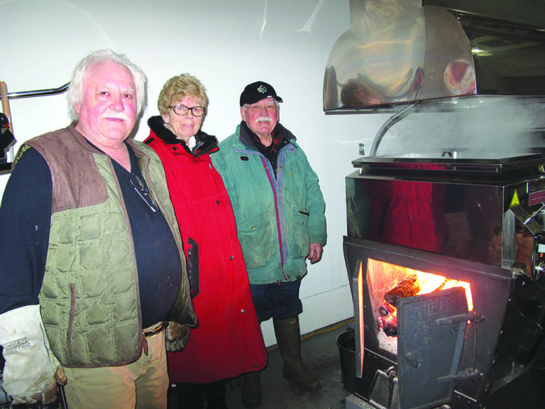 L’évaporateur fonctionne à plein régime ce qui permet la production de sirop d’érable à la cabane à sucre des Desroches! On retrouve Père Justin Desroches