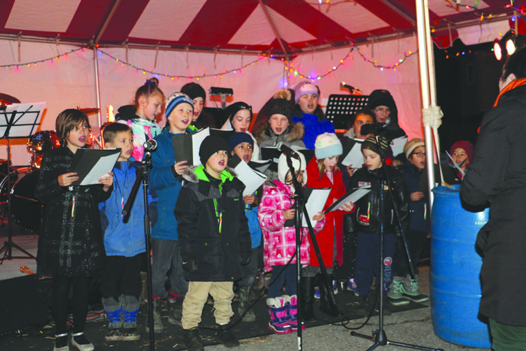C’est sous les airs de «Mon beau sapin» interprété par la chorale de l’école Sainte-Croix et les gens présents, que l’immense sapin devant les bureaux