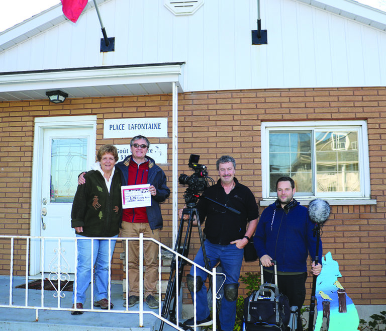 L’équipe de Productions Rivard (de Winnipeg) en tournage à Lafontaine pour la série Chacun sa route, télévisée sur les ondes de TVA. De gauche à