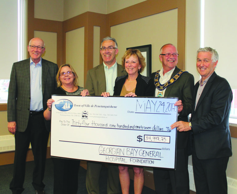 C’est le 24 mai dernier qu’a eu lieu la remise d’un chèque lors de la séance du Conseil municipal de Penetanguishene. Des dirigeants de la