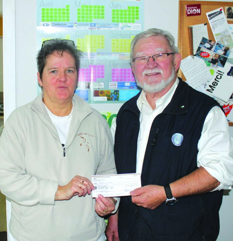 Martin Lalonde du Club Richelieu Penetanguishene a remis un chèque à la présidente du journal communautaire Le Goût de vivre, Odette Bussière afin de commanditer