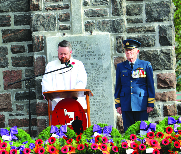 Lors de la cérémonie du Jour du souvenir du 11 novembre dernier au cénotaphe de Penetanguishene on retrouvait l’aumônier Mark Wolfe en compagnie de Roméo