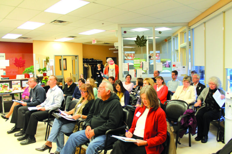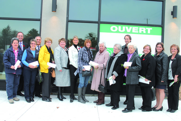 La Caisse Desjardins a distribué ses dons annuels lors de l’ouverture officielle. On retrouve en avant : Odette Bussière pour Le Goût de vivre, Francine