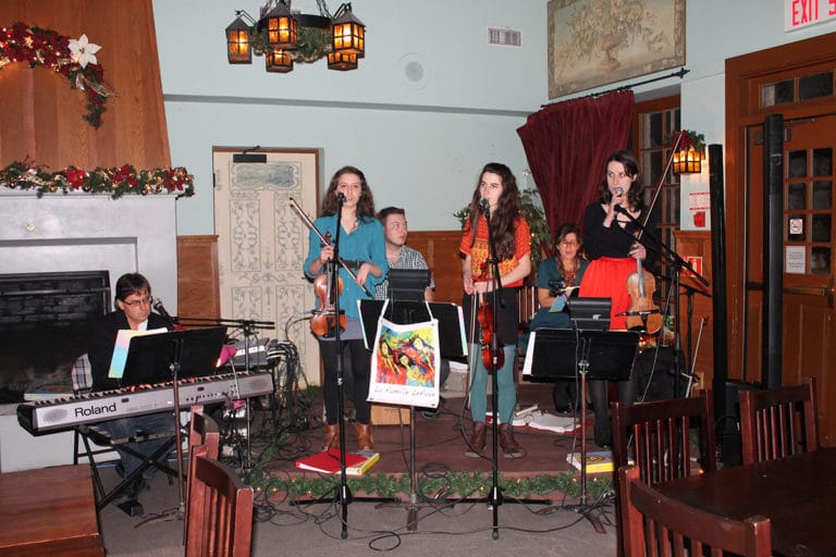 Le groupe «Ariko», composé de Louis Lefaive au clavier, Jill, Nicole et Kelly Lefaive au violon, Taylor Forget à la boîte à bois et Laura