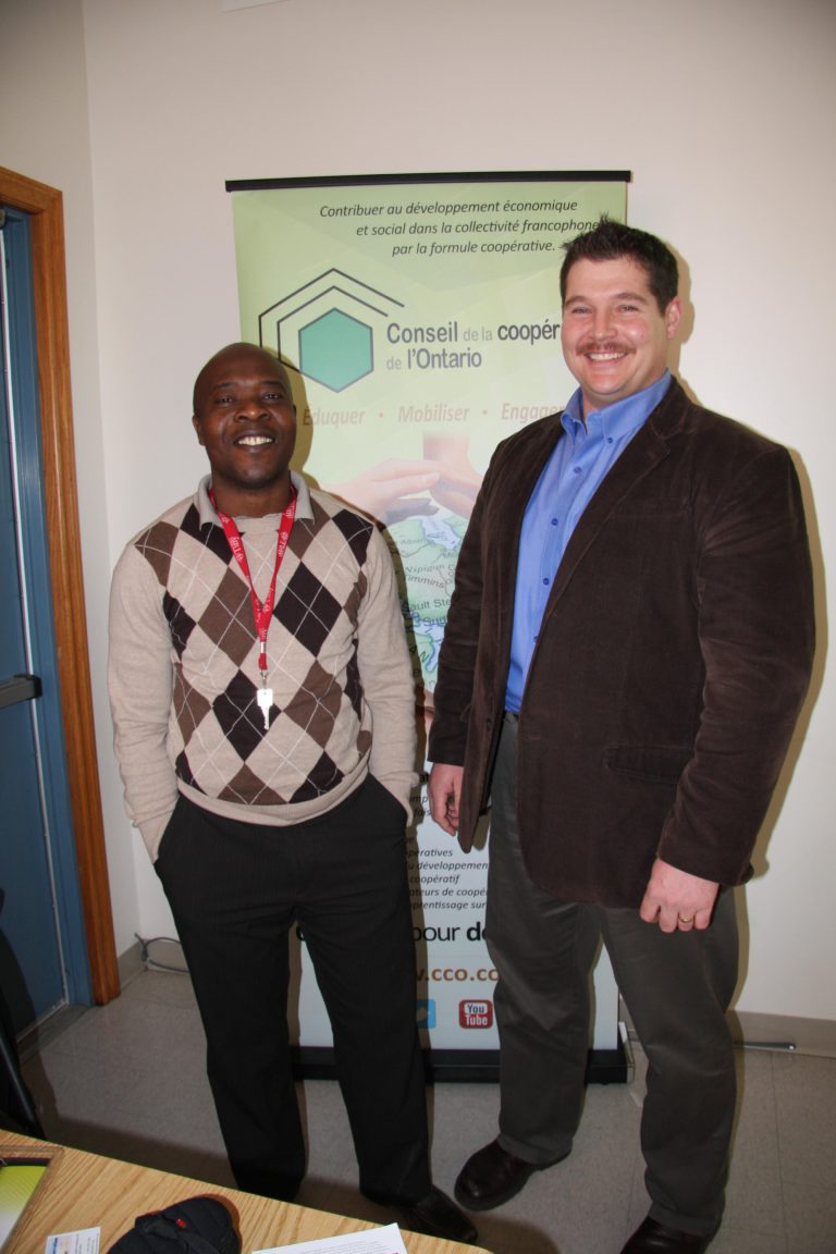 Charles Kouassi, agent de développement pour la région du Centre-Sud-Ouest du Conseil de la Coopération de l’Ontario est en compagnie de Christian Howald, Agent de