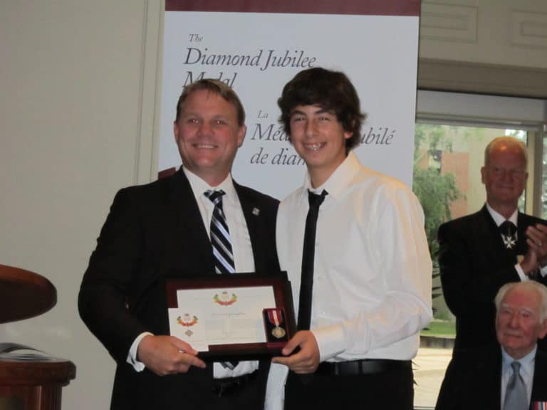 Le député provincial de Barrie, Rod Jackson a remis la Médaille du jubilé de diamant à Jérémie Spadafora lors de la cérémonie officielle le 29