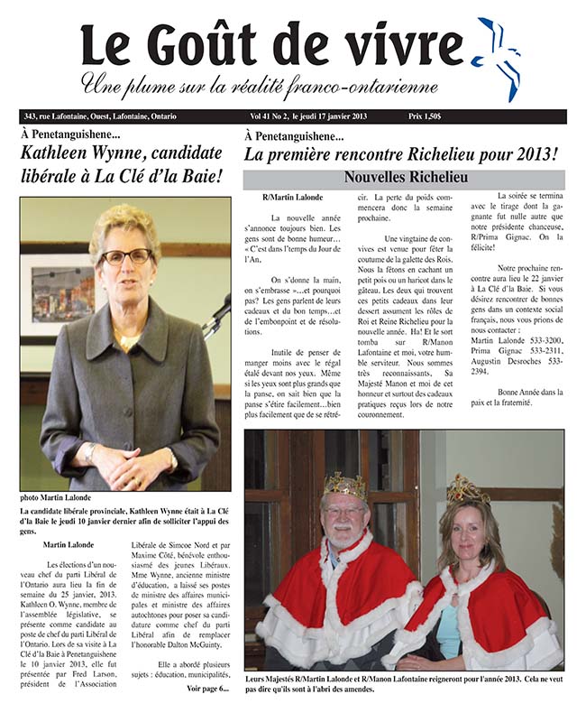 La candidate libérale provinciale, Kathleen Wynne était à La Clé d’la Baie le jeudi 10 janvier dernier afin de solliciter l’appui des gens. Martin Lalonde