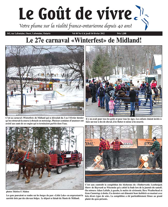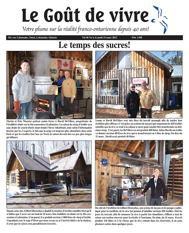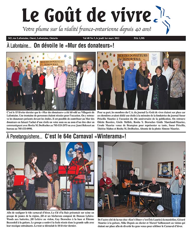 Cher Goût de vivre. Il est bon de partager les nouvelles locales avec nos familles éloignées et pour moi, le Goût de vivre fait ceci