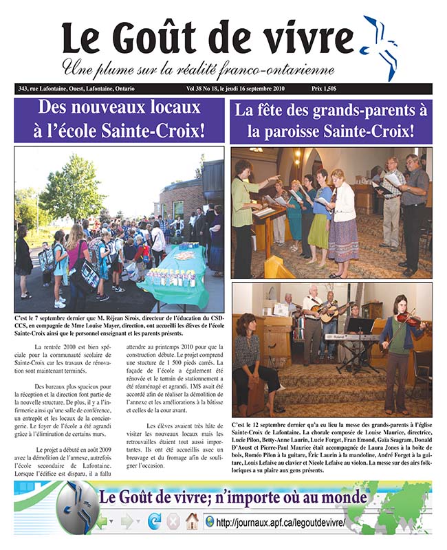 Le Goût de vivre (Vol.38 No.18) – 16 septembre 2010