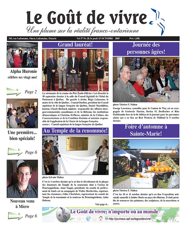 Le Goût de vivre (Vol.37 No.20) – 15 octobre 2009