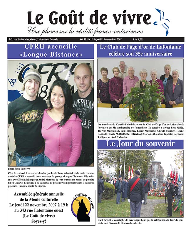 Le Goût de vivre (Vol.35 No.22) – 15 novembre 2007