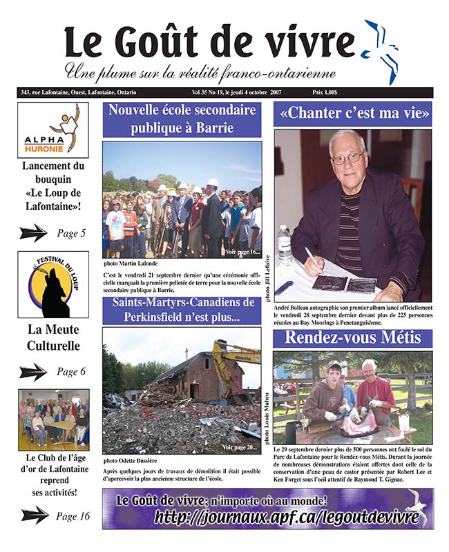 Le Goût de vivre (Vol.35 No.19) – 4 octobre 2007