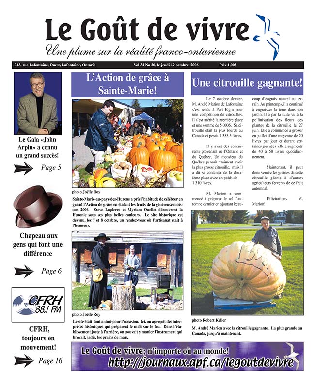 Le Goût de vivre (Vol.34 No.20) – 19 octobre 2006