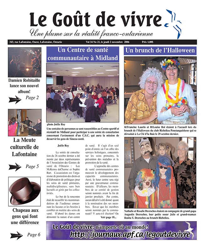Le Goût de vivre (Vol.34 No.21) – 2 novembre 2006