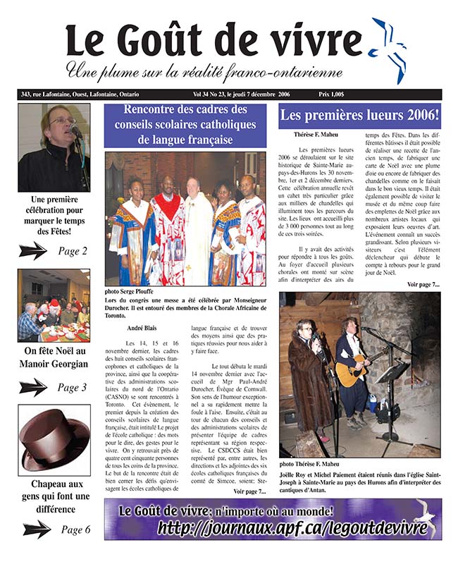 Le Goût de vivre (Vol.34 No.23) – 7 décembre 2006