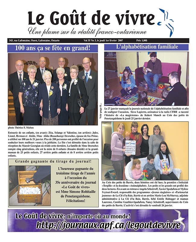 Le Goût de vivre (Vol.35 No.02) – 18 janvier 2007