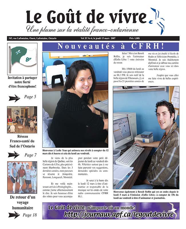 Le Goût de vivre (Vol.35 No.07) – 5 avril 2007