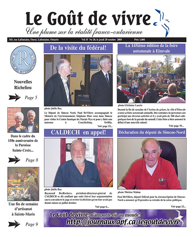 Le Goût de vivre (Vol.33 No.20) – 20 octobre 2005