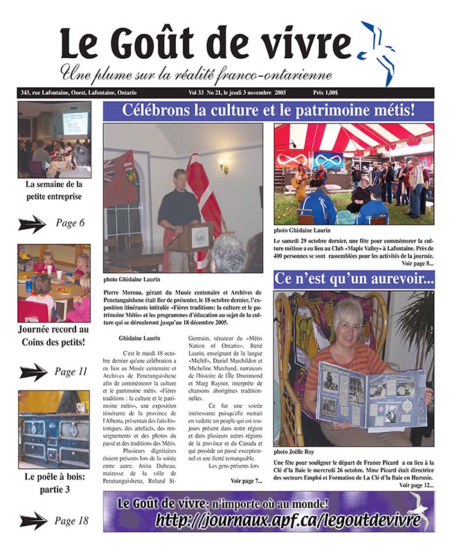 Le Goût de vivre (Vol.33 No.21) – 3 novembre 2005