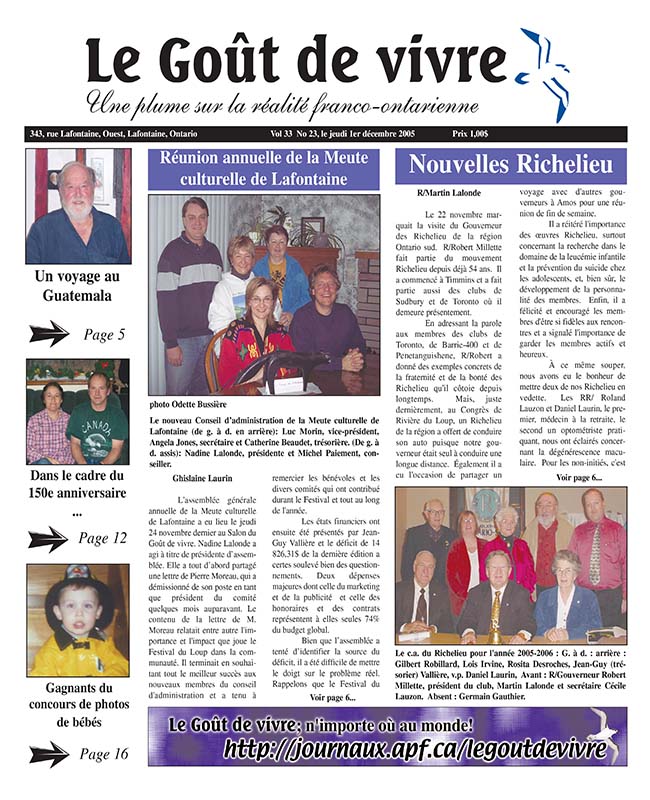 Le Goût de vivre (Vol.33 No.23) – 1 décembre 2005