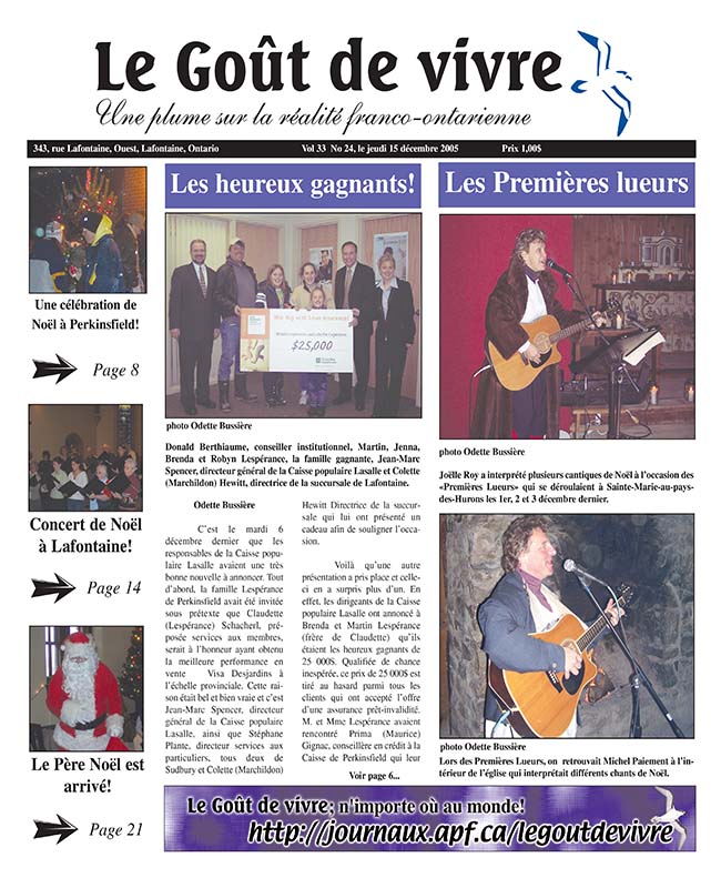 Le Goût de vivre (Vol.33 No.24) – 15 décembre 2005