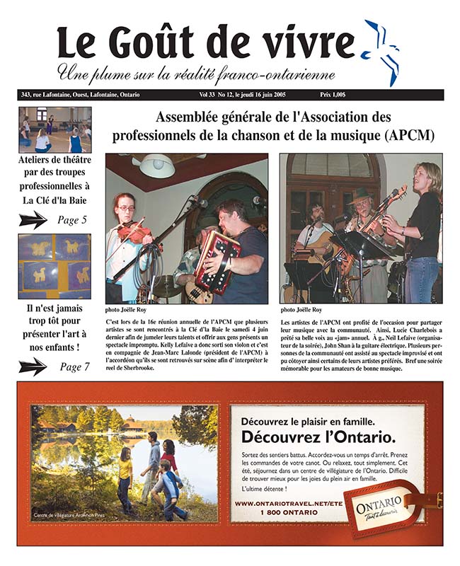 Le Goût de vivre (Vol.33 No.12) – 16 juin 2005