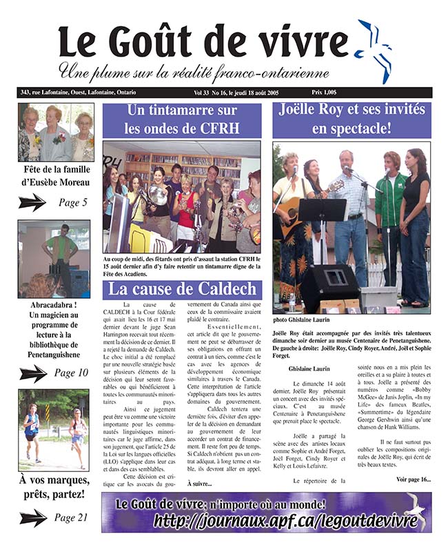 Le Goût de vivre (Vol.33 No.16) – 18 août 2005