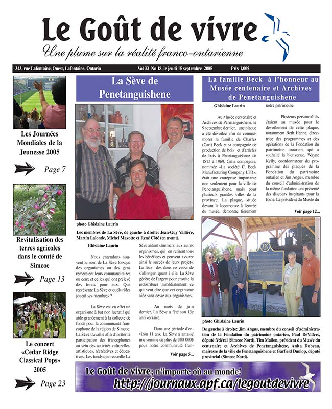 Le Goût de vivre (Vol.33 No.18) – 15 septembre 2005