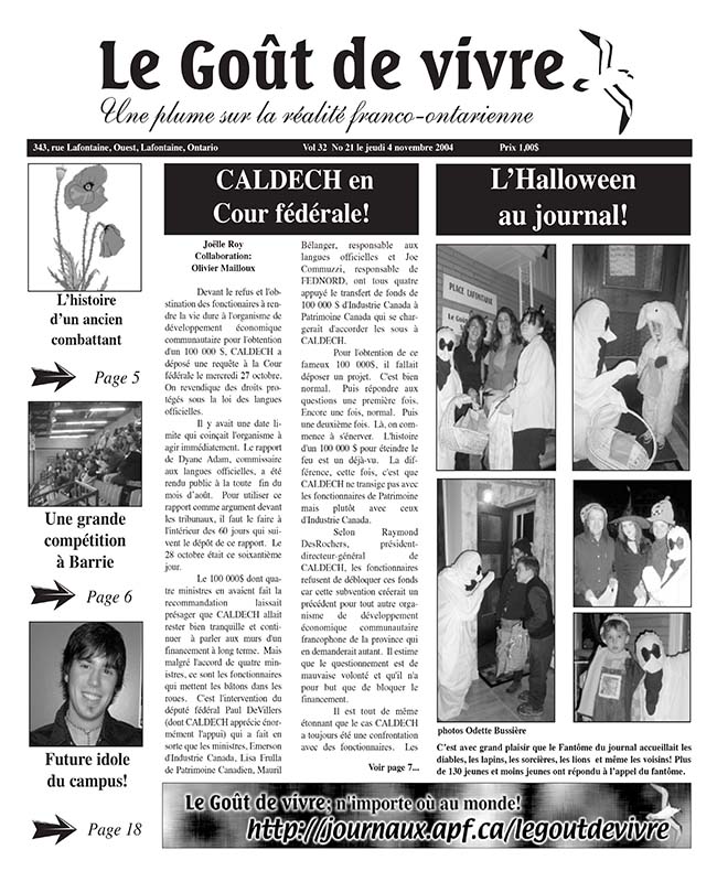Le Goût de vivre (Vol.32 No.21) – 4 novembre 2004
