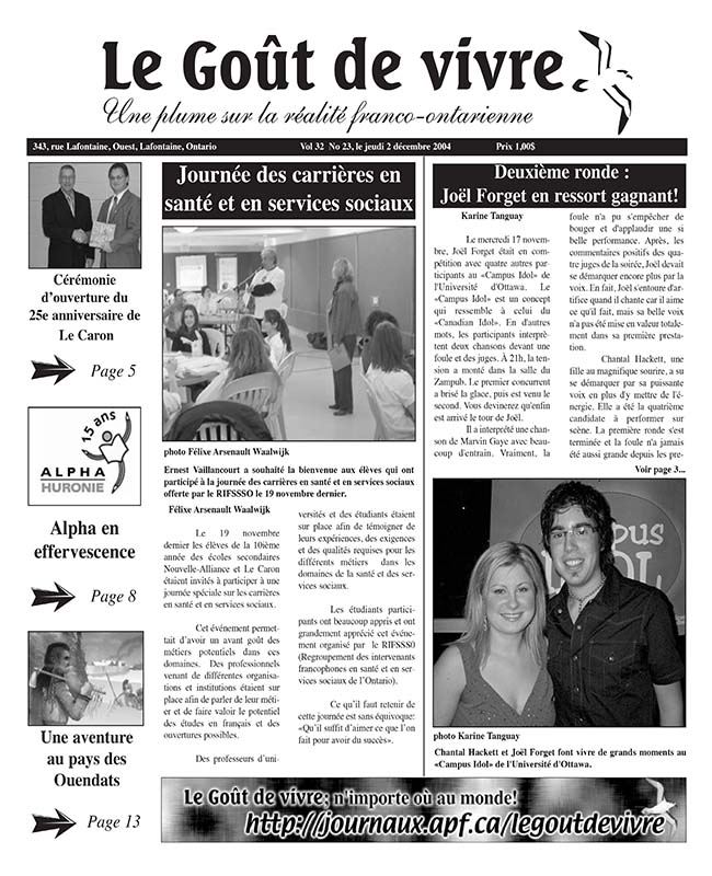 Le Goût de vivre (Vol.32 No.23) – 2 décembre 2004