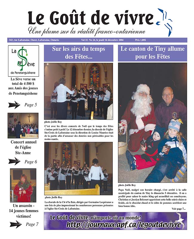 Le Goût de vivre (Vol.32 No.24) – 16 décembre 2004
