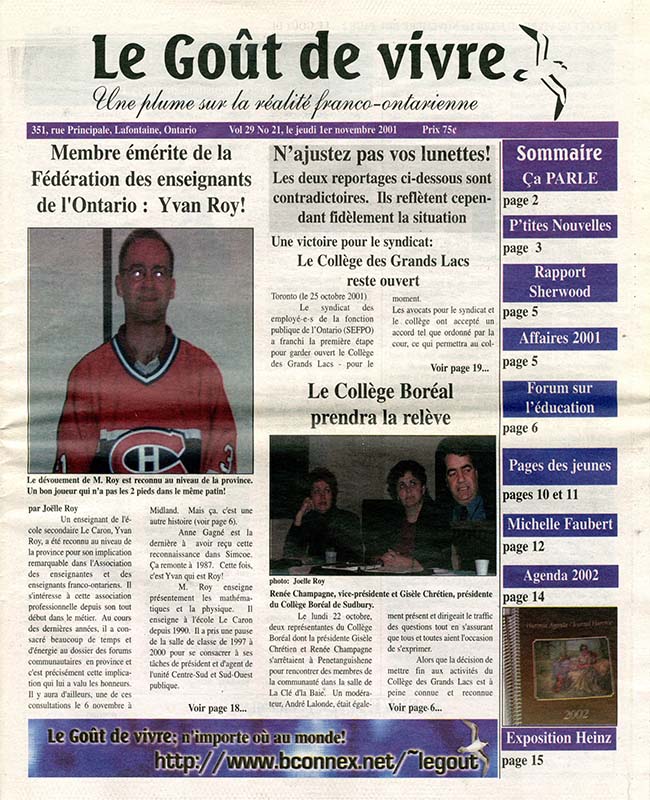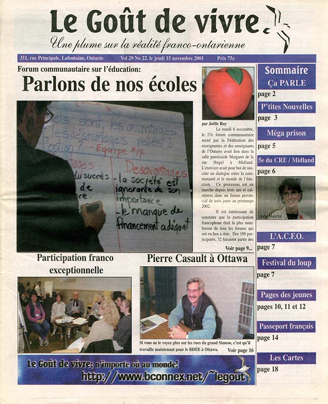 Le Goût de vivre (Vol.29 No.22) – 15 novembre 2001