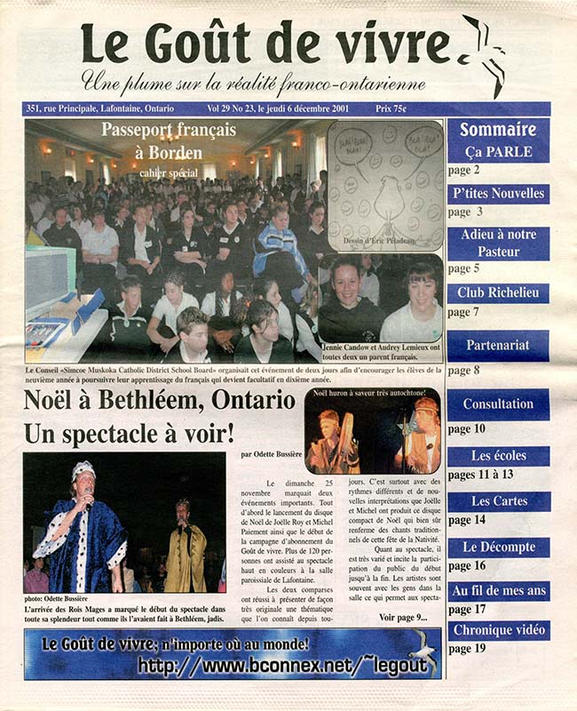 Le Goût de vivre (Vol.29 No.23) – 6 décembre 2001