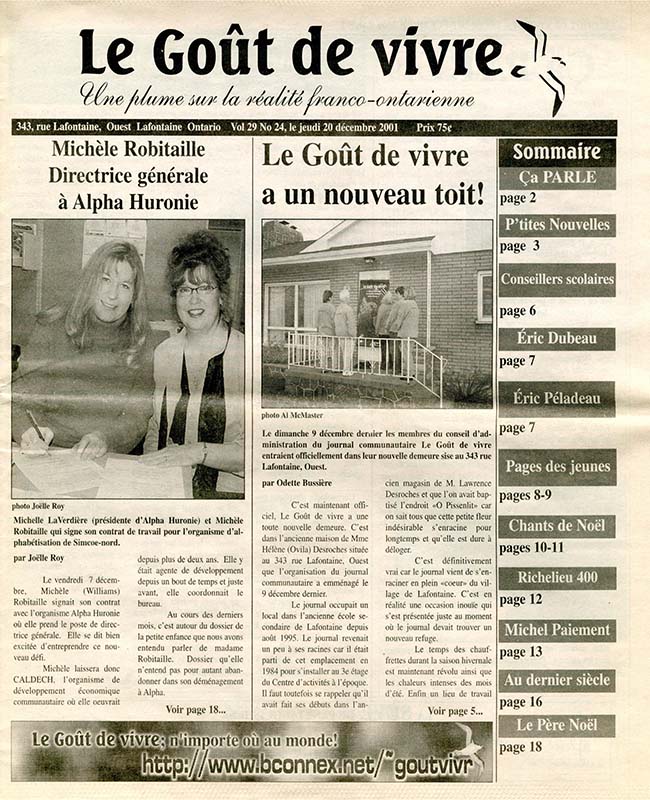 Le Goût de vivre (Vol.29 No.24) – 20 décembre 2001