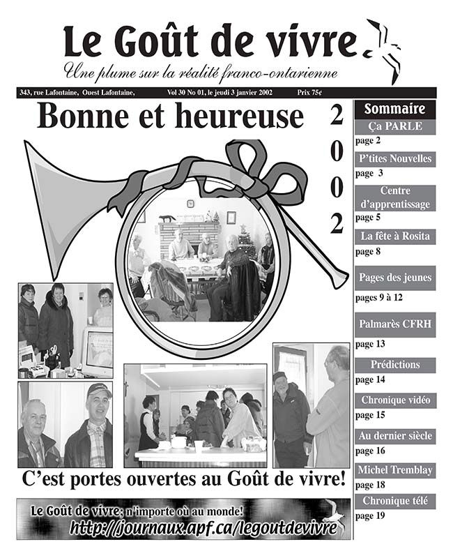 Le Goût de vivre (Vol.30 No.01) – 3 janvier 2002