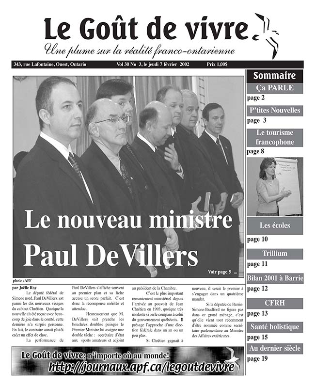 Le Goût de vivre (Vol.30 No.03) – 7 février 2002