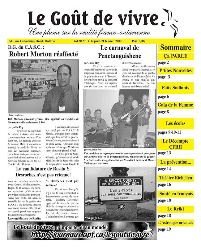 Le Goût de vivre (Vol.30 No.04) – 21 février 2002