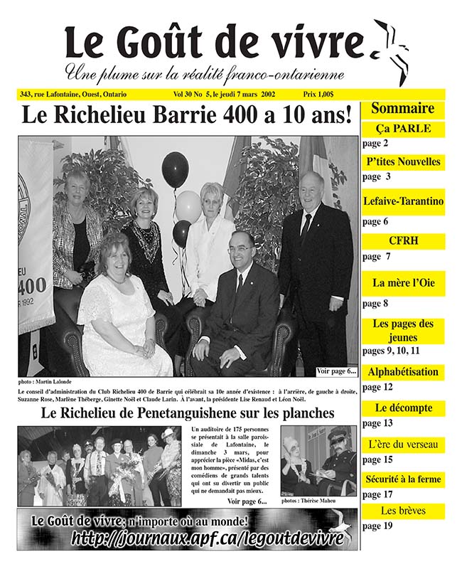 Le Goût de vivre (Vol.30 No.05) – 7 mars 2002