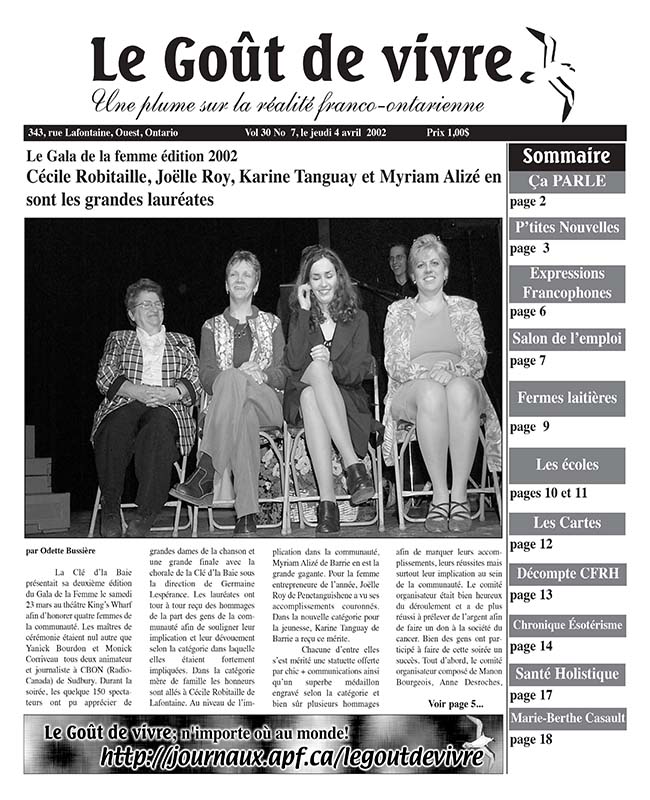 Le Goût de vivre (Vol.30 No.07) – 4 avril 2002